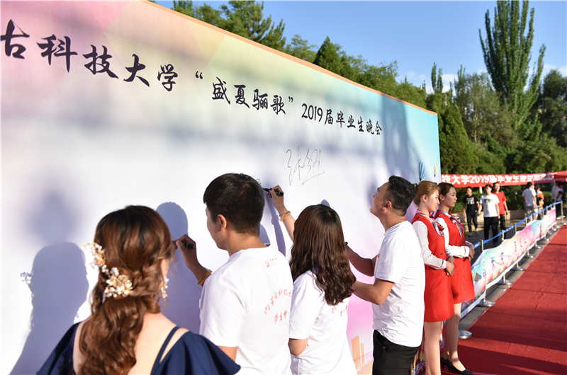 晚会开始前,优秀毕业生代表一一走上红毯,签字留念并分享自己大学四年的学习生活。