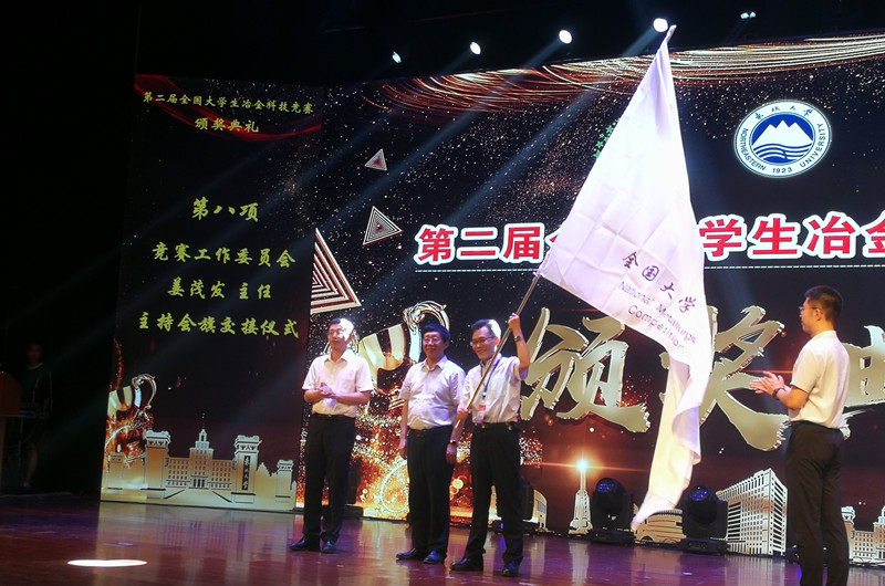 闭幕式上,全国大学生冶金科技竞赛工作委员会授予伟德官网第三届全国大学生冶金科技竞赛的承办权,并完成了会旗交接仪式。