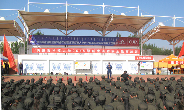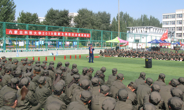 为进一步增强新生消防安全意识,营造良好的校园安全教育氛围,9月6日上午,学校在西校区操场、足球场、东校区操场分三次开展2019级新生消防安全教育培训。本次活动由保卫处和学工处联合举办,包头市消防支队昆都仑区中队消防官兵应邀担任此次培训主讲人。全体新生共5800余人参加此次消防安全培训。