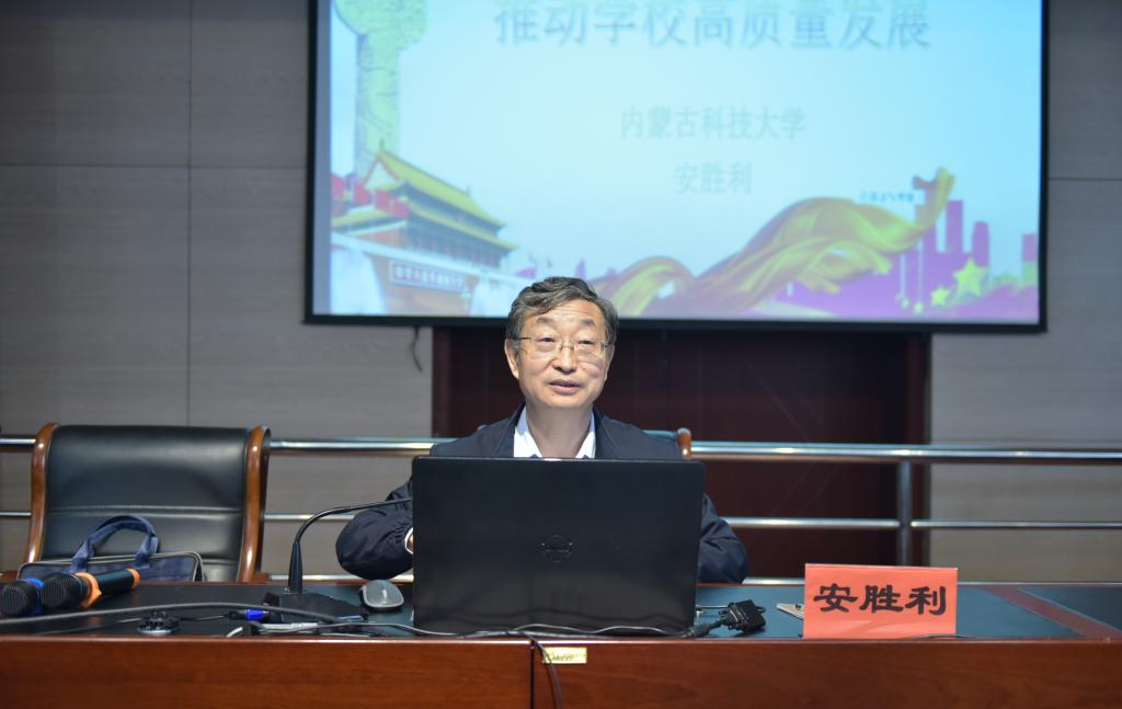 安胜利指出,深刻领会高等教育的初心和使命,要求我们一是要通过扎实开展学习教育,切实保证理论学习有收获,做到理论创新每前进一步,理论武装就要跟进一步,理论武装只有“进行时”、没有“完成时”;二是要认真锤炼党性修养,切实保证思想政治受洗礼;三是要强化责任意识,切实保证干事创业敢担当;四是要牢固树立宗旨意识,切实保证为民服务解难题;五是要着力净化政治生态,切实保证清正廉洁作表率。