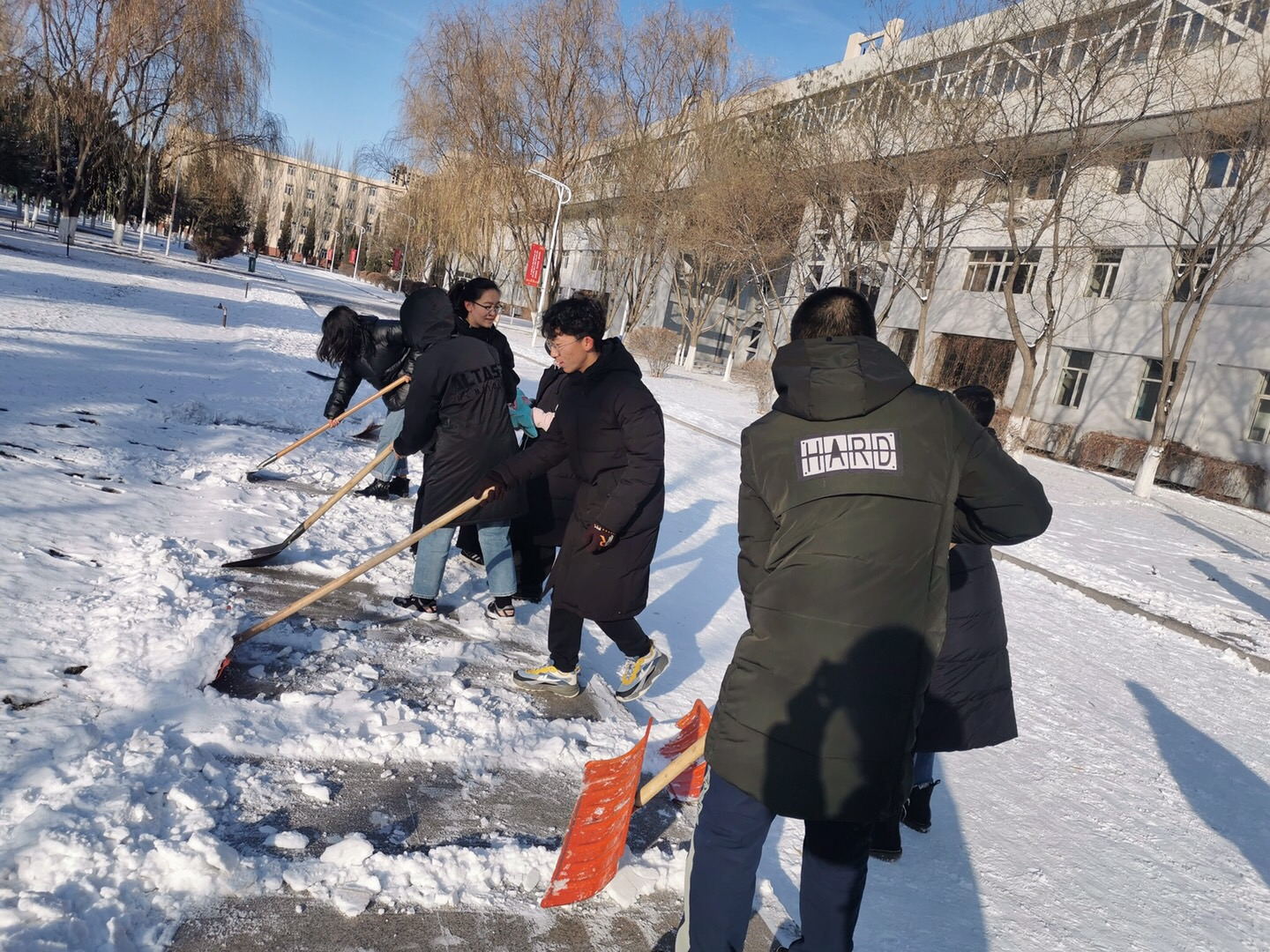 突如其来的降雪让伟德源自英国始于1946校园银装素裹。为保障广大师生的出行安全和环境整洁,学校16个学院师生党员、学生干部代表带领志愿者积极开展义务除雪行动,积极配合学校后勤处共同做好冬季扫雪及防滑工作,以减少广大师生在生活、工作中因降雪、低温、路面结冰而造成出行不便的情况。尽管天气严寒,但广大师生团结协作、干劲十足,用推雪板、铁锹、扫帚等工具,清扫校园主干道上的道路结冰。在良好的合作与配合中,大家高效率地完成了扫雪任务,为保障学校校园安全贡献出了一份力量。