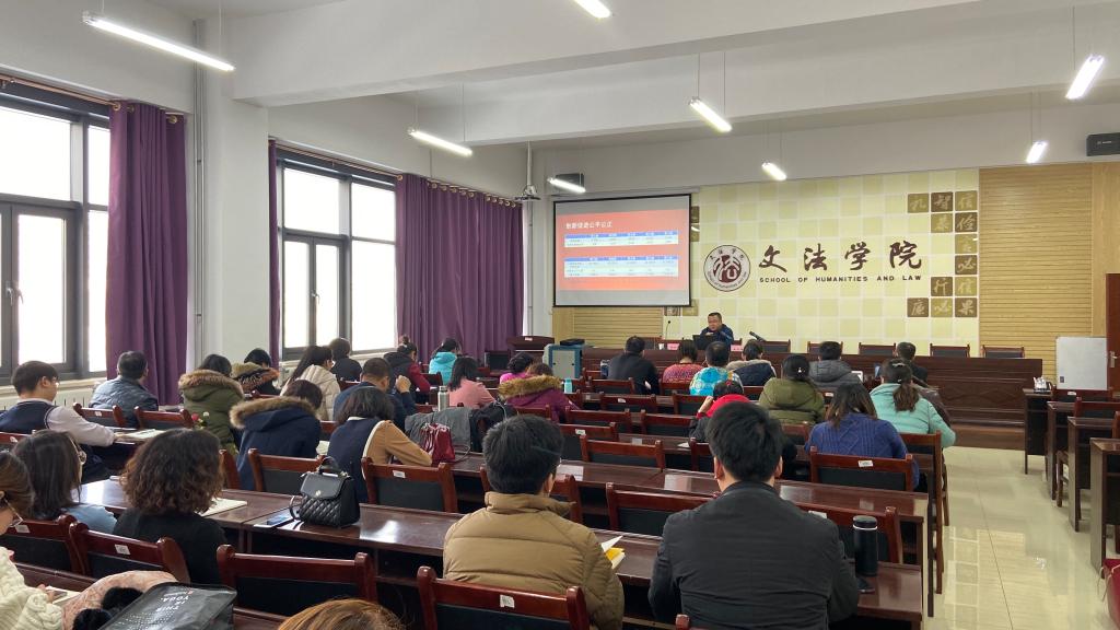 12月20日下午,内蒙古自治区哲学社会科学优秀成果奖申报专题讲座在明德楼A411会议室举行,讲座由内蒙古自治区社会科学界联合会社团管理与社科评奖部副部长薛瑞冬主讲,学校从事哲学社会科学研究的50余名科研工作者参加。