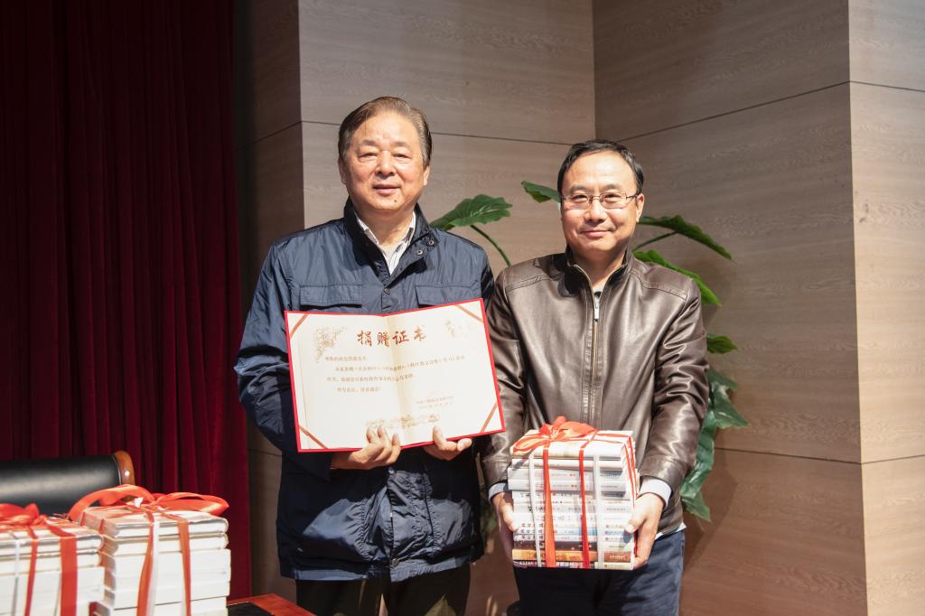 讲座结束后,赫连佳新向校图书馆捐赠了他的文学作品《关东秋叶》、《叶赫食府》、《翡翠公主》、《电脑骑士》、《秋叶散文诗集》、《最美秋叶词》《、杭州词韵》等著作共计60余册。校图书馆向赫连佳新颁发了捐赠证书。