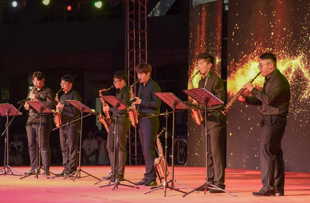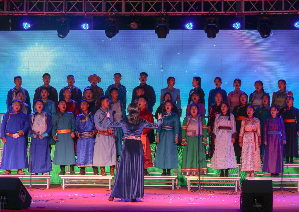 晚会由艺术与设计学院老师带来的歌曲《共筑中国梦》拉开帷幕;苏尔沁舞蹈艺术协会来的蒙古舞和神骏乐团的马头琴表演展现了一往无前的“蒙古马精神”;艺术与设计学院教师王蕾和19级音乐系学生的歌曲《灯火里的中国》,歌唱祖国的繁荣富强,歌唱小康社会里的幸福生活;百灵鸟合唱团的《欢乐的那达慕》,抒发对美丽草原的热爱之情。晚会在教职工舞蹈队和毕业生车树雨《生命里的歌》的舞蹈表演中到达高潮,跳跃的音符演奏着生命的活力,绚烂的舞姿混合着时代的气息,现场观众陶醉其中。