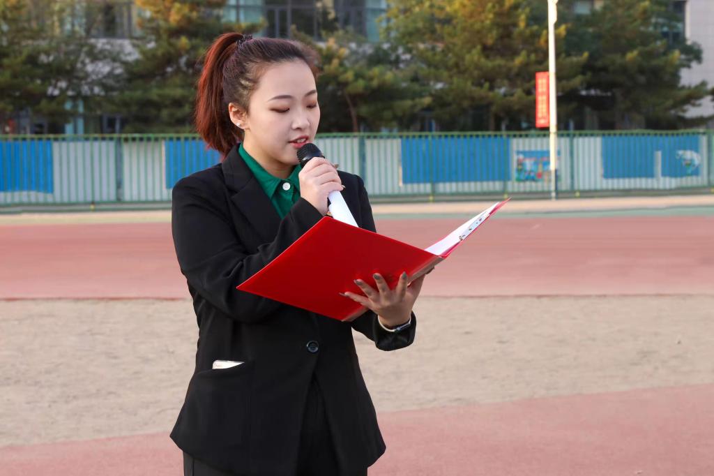 能源与环境学院学生代表蔡晓彤作了“我和我的祖国”主题演讲,讲述了国旗、国徽和国歌的历史和精神内涵。在场师生满怀热情,认真聆听,以热烈的掌声表达对伟大祖国的热爱。