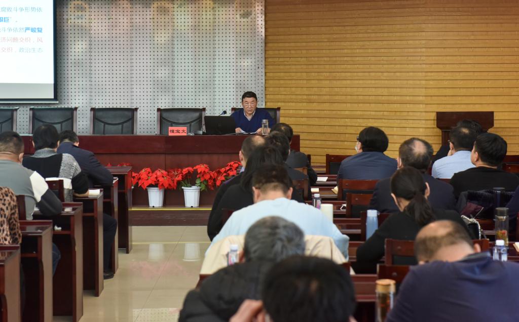 纪检监察室(审理室)副主任付宇作了题为“监督执纪常用纪法条规解读”的专题报告,就《中国共产党纪律处分条例》历次修订情况,政治纪律、组织纪律、廉洁纪律、群众纪律、工作纪律、生活纪律等几方面结合经典案例进行了细致解读。