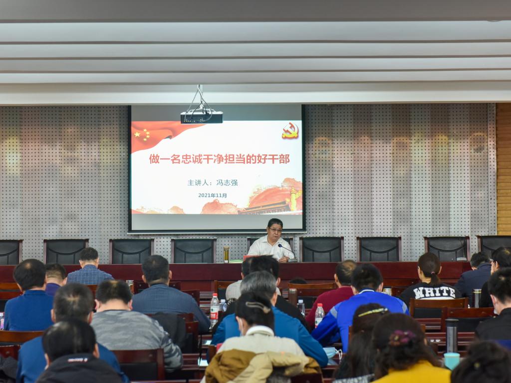 校党委副书记冯志强以“做一名忠诚干净担当的好干部”为题作专题报告。他深入剖析了对党忠诚、干净做事、勇于担当的内涵及三者之间的深层内在联系。他强调,全体处级干部要不断增强政治意识,提高政治判断力、政治领悟力、政治执行力,在大是大非面前始终保持头脑清醒,立场坚定;要善于学习,勇于担当,争做明大事、想干事、会干事、干成事、不出事、好共事的好干部。