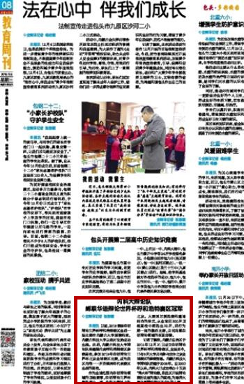 同期,包头晚报报道“出线华语辩论大赛”,链接:http://customupload.baotounews.com/nepaper/btwb/html/2018-12/12/content_116239.htm