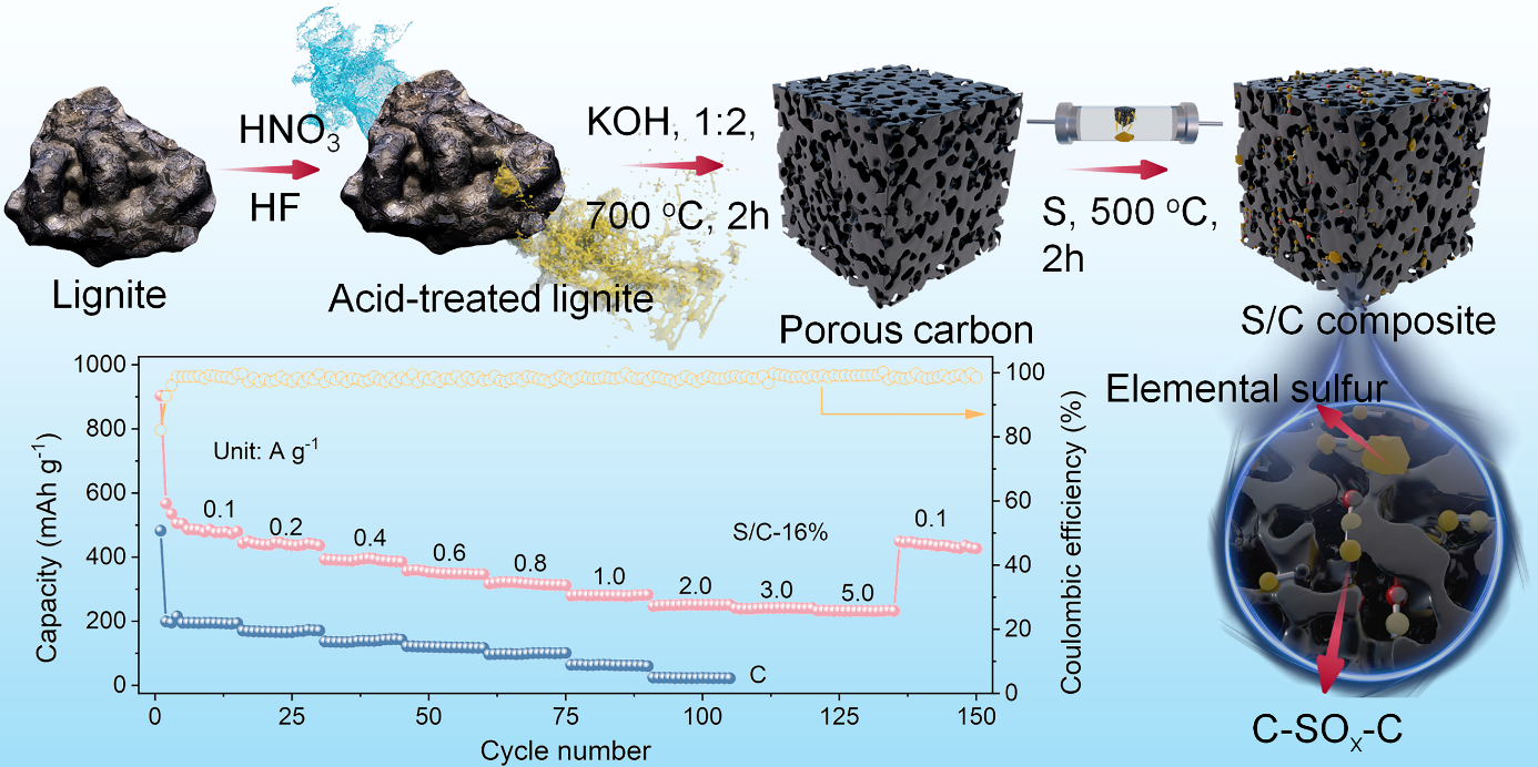 工作六:褐煤衍生碳对Bi2S3钠离子电池负极材料首次库伦效率提升的作用机制研究