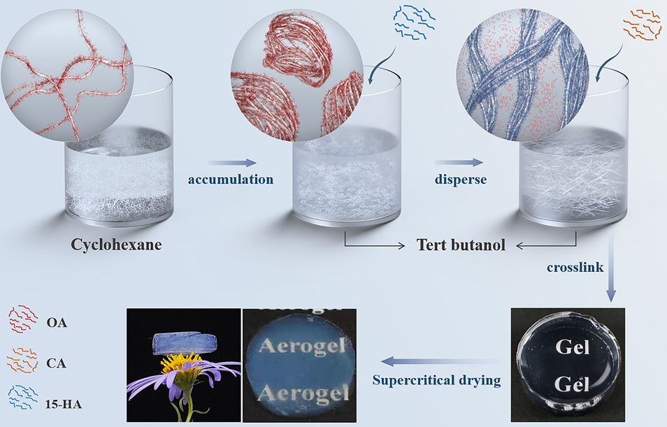 气凝胶凭借其纳米尺度的结构单元和独特的三维网络结构,展现出优异的物理化学性能,被国际纯粹与应用化学联合会列为十大新兴化学技术之一。然而,随着应用需求的不断提升,传统纳米尺度结构单元(如纳米线、纳米片、纳米管和纳米颗粒)在进一步优化气凝胶性能方面已显现出局限性。如何在保持气凝胶轻质、高比表面积等优势的同时,突破现有材料的性能瓶颈,成为该领域亟待解决的关键科学问题。