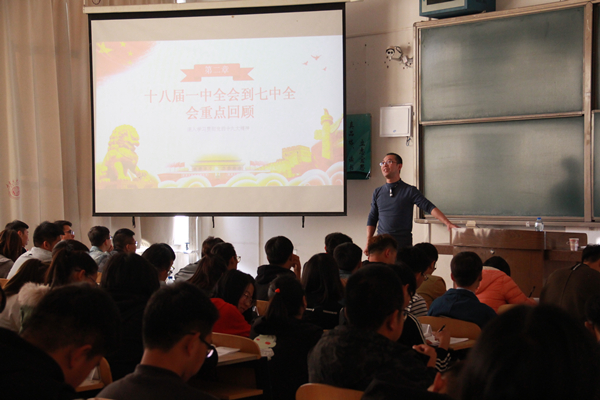 10月26日下午,校团委邀请马克思主义学院副院长班瑞钧为伟德官网第九期青马班学员做题为《通识大势渐积小为——深入学习贯彻十九大精神》为主题的讲座。本次讲座从十九大简介及重要意义、十八届一中全会到七中全会重点回顾、十九大报告内容精解、做合格党团员四个方面解读了十九大会议的精神。本次课程通过对党的发展探索历程的简要回顾及对十九大报告内容的精解,使学员们深刻认识到十九大在全面建成小康社会决胜阶段与中...