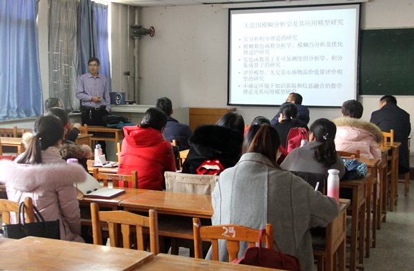 12月9日,由科技处主办、理学院协办的2018年国家基金申报系列活动的学术讲座在秋实楼C507举行,西北师范大学数学与统计学院巩增泰教授先后作题为“大范围模糊分析学及其应用模型研究”、“国家基金项目写作指导”的讲座。科技处相关人员、理学院全体教师参加讲座。巩教授首先结合自己的研究方向介绍了模糊技术的开发和利用,概述了模糊数学的发展和前景。随后,他从申请国家基金的选题构思、立项依据、研究目标、方案路线、...
