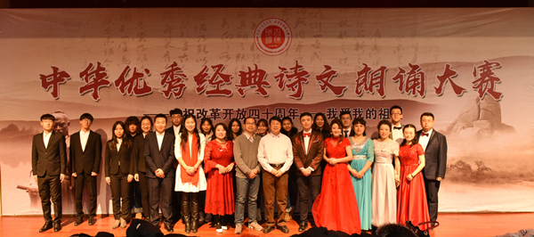 为庆祝改革开放40周年,深入挖掘中华优秀传统文化,切实提升广大教职工的思想水平和文明素养。1月4日下午,学校举办以“庆祝改革开放四十周年——我爱我的祖国”为主题的教工中华优秀经典诗文朗诵大赛。包头市阅读会主席刘晓刚,副主席李丽,包头广播电视台产业经营中心副总监孙武,校党委宣传部、工会、文法学院、艺术与设计学院、普通话测试中心相关负责人及代表等9人出席活动并担任评委。赛前,通过学校教师个人报名和...
