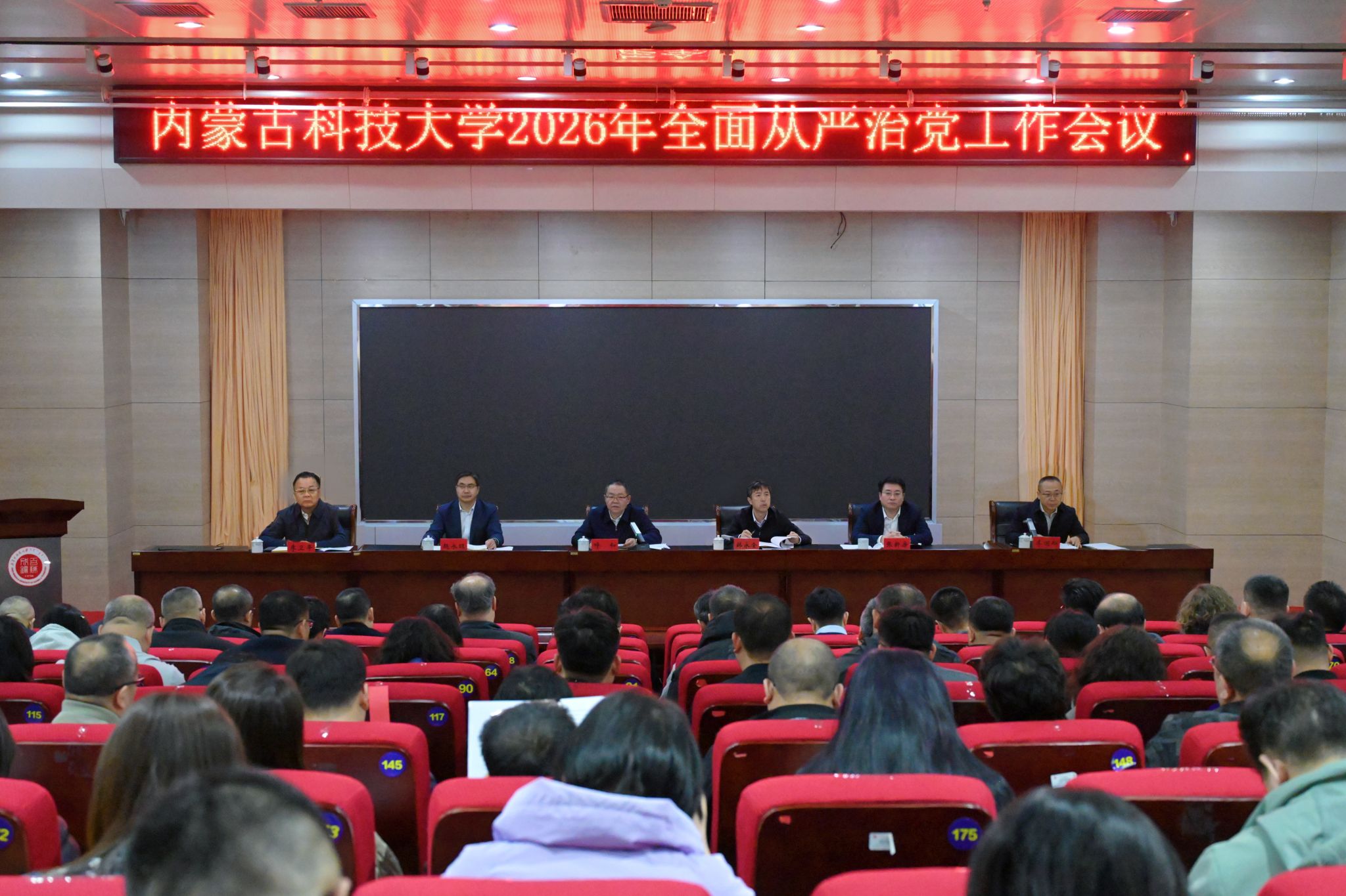 为深入贯彻党的二十大和二十届历次全会精神,全面落实二十届中央纪委五次全会、自治区十一届纪委六次全会及全国、全区教育系统全面从严治党工作会议部署,3月23日下午,学校在图书馆二楼报告厅召开2026年全面从严治党工作会议,回顾总结学校2025年全面从严治党工作取得的成效,安排部署2026年全面从严治党年度重点工作。校党委书记呼和出席并讲话,对推进学校全面从严治党作出总体部署,提出具体要求。党委副书记、校长韩永全主...