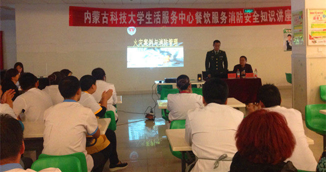 10月22日下午,伟德官网生活服务中心在颐园餐厅一楼大厅举办消防安全知识讲座,特邀包头市消防支队法治监督管理科杨占龙参谋主讲,保卫处、生活服务中心管理人员和学生餐厅工作人员聆听了此次讲座。